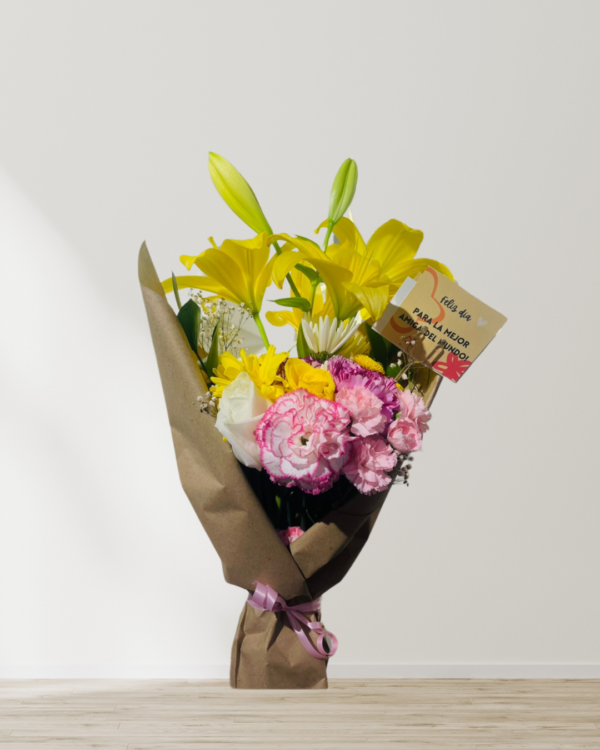 Descubre la belleza única de nuestro bouquet de flores variadas. Cada ramo está cuidadosamente creado para ofrecerte una explosión de colores y fragancias que iluminarán cualquier ocasión especial. Nuestro bouquet es la elección perfecta para expresar amor, gratitud o celebrar momentos inolvidables. Haz que cada día sea especial con nuestras hermosas flores variadas.