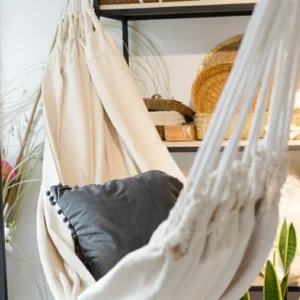 El color crudo, neutro y versátil, se adapta fácilmente a distintos estilos de decoración, mientras que los flecos y nudos característicos del macramé añaden personalidad y encanto. Ideal como complemento para sofás, camas o sillones, esta manta es perfecta para crear ambientes acogedores y sofisticados.
